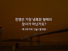 책속 한줄 모든 예술의 뿌리는, 또한 어쩌면 모든 정신의 뿌리는 죽음에 대한 두려움일 것이다. 그로씽 2020. 9. 19. 09:42 728x90 모든 예술의 뿌리는,또한 어쩌면 모든 정신의 뿌리는죽음에 대한 두려움일 것이다. - 책 《나르치스와 골드문트》 헤르만 헤세 - 그로씽 바로가기 나르치스와 골드문트 헤르만 헤세(Hermann Hesse) 책 읽으러 가기 공유하기 게시글 관리 그로씽 '책속 한줄' 카테고리의 다른 글 전쟁은 가장 냉혹한 형태의 장사가 아닌가요? (0) 2020.09.21 높은 데서 낮은 데로 흐르는 것이 물의 본성이자 섭리인 것이다. 사람의 일은 늘상 그러하여 나아가게 되어 있으며, 전혀 없던 일을 시작하는 일에 실패란 없는 것이며, 그만큼 이루어진 .. (0) 2020.09.20 보통의 존재가 내가 아닌 것을 시기하지 않으며, 차가운 시선을 견디고, 있는 그대로의 나로서 살아가기 위하여. (0) 2020.09.18 당신의 예민함이 곧 정의가 아니며 당신의 불편함이 곧 불의의 근거도 아니다. (0) 2020.09.17 가슴을 뭉클하게 하는 이 모든 게 사라져간다는 것이, 마치 피를 흘리는 아버지를 슬로모션으로 지켜 보는 느낌이다. 삶이 아버지에게서 한 방울 한 방울 새어나가고 있다. (0) 2020.09.16 '책속 한줄' 관련글 전쟁은 가장 냉혹한 형태의 장사가 아닌가요? 높은 데서 낮은 데로 흐르는 것이 물의 본성이자 섭리인 것이다. 사람의 일은 늘상 그러하여 나아가게 되어 있으며, 전혀 없던 일을 시작하는 일에 실패란 없는 것이며, 그만큼 이루어진 .. 보통의 존재가 내가 아닌 것을 시기하지 않으며, 차가운 시선을 견디고, 있는 그대로의 나로서 살아가기 위하여. 당신의 예민함이 곧 정의가 아니며 당신의 불편함이 곧 불의의 근거도 아니다.