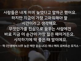 책속 한줄 인간관계를 경쟁으로 바라보고 타인의 행복을 나의 패배로 여기기 때문에 축복하지 못한 걸세. 그로씽 2020. 10. 4. 23:47 728x90 인간관계를 경쟁으로 바라보고타인의 행복을 나의 패배로여기기 때문에 축복하지 못한 걸세. - 책 《미움받을 용기》 기시미 이치로 , 고가 후미타케 - 그로씽 바로가기 미움받을 용기 기시미 이치로,고가 후미타케 책 읽으러 가기 공유하기 게시글 관리 그로씽 '책속 한줄' 카테고리의 다른 글 사람들은 내게 이미 늦었다고 말하곤 했어요. 하지만 지금이 가장 고마워해야 할 시간이라고 생각해요. 무엇인가를 진심으로 꿈꾸는 사람에겐 바로 지금 이 순간이 가장 젊은 때이거든요.. (0) 2020.10.06 두려움은 이성적 사고를 막고 희망을 독살하고 더 나은 미래를 위한 건설적인 협력을 방해한다. (0) 2020.10.05 의미없이 하는 일은 그만두고, 등대가 가리키는 일을 하세요. (0) 2020.10.03 사랑엔 휴가가 없어. 그런건 존재하지 않아. 사랑은 권태를 포함한 모든 것까지 온전히 감당하는 거야... 삶이 아름다움과 권태를 끌어안듯, 사랑도 거기서 벗어날 수 없어. (0) 2020.10.03 내가 나 자신을 제대로 이해하는 것도 어렵다. 하물며 타인을 이해하고 내 의지대로 그를 변화시키는 것은 얼마나 어려운 일이겠는가. (0) 2020.10.03 '책속 한줄' 관련글 사람들은 내게 이미 늦었다고 말하곤 했어요. 하지만 지금이 가장 고마워해야 할 시간이라고 생각해요. 무엇인가를 진심으로 꿈꾸는 사람에겐 바로 지금 이 순간이 가장 젊은 때이거든요.. 두려움은 이성적 사고를 막고 희망을 독살하고 더 나은 미래를 위한 건설적인 협력을 방해한다. 의미없이 하는 일은 그만두고, 등대가 가리키는 일을 하세요. 사랑엔 휴가가 없어. 그런건 존재하지 않아. 사랑은 권태를 포함한 모든 것까지 온전히 감당하는 거야... 삶이 아름다움과 권태를 끌어안듯, 사랑도 거기서 벗어날 수 없어.