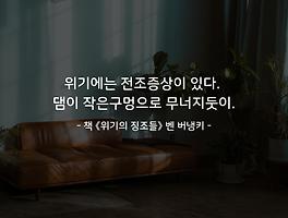 위기에는 전조증상이 있다. 댐이 작은구멍으로 무너지둣이. (0) | 2021.04.08 |
