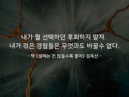 내가 뭘 선택하던 후회하지 말자. 내가 겪은 경험들은 무엇과도 바꿀수 없다. (0) | 2021.04.07 |