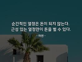 순간적인 열정은 돈이 되지 않는다. 근성 있는 열정만이 돈을 벌 수 있다. (0) | 2021.04.12 |
