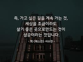 즉, 가고 싶은 길을 계속 가는 것, 세상을 조금이라도 살기 좋은 곳으로만드는 것이 성공이라는 것입니다. (0) | 2021.04.13 |