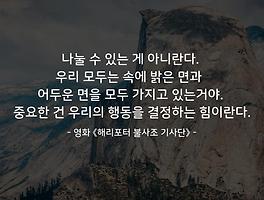 나눌 수 있는 게 아니란다. 우리 모두는 속에 밝은 면과 어두운 면을 모두 가지고 있는거야. 중요한 건 우리의 행동을 결정하는 힘이란다. (0) | 2020.02.06 |