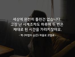 세상에 완전히 틀린건 없습니다. 고장 난 시계조차도 하루에 두 번은 제대로 된 시간을 가리키잖아요. (0) | 2020.04.23 |