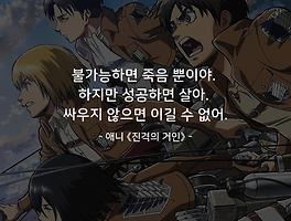 불가능하면 죽음 뿐이야. 하지만 성공하면 살아. 싸우지 않으면 이길 수 없어. (0) | 2020.05.06 |