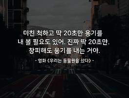 감동명대사 (337) 썸네일형 리스트형 우리가 싸우는 건 세상을 바꾸기 위해서가 아니라 세상이 우리를 바꾸지 못하게 하기 위해서예요. 우리가 싸우는 건 세상을 바꾸기 위해서가 아니라 세상이 우리를 바꾸지 못하게 하기 위해서예요. - 영화 《도가니》 - 인연이란 말은 시작할 때 하는 말이 아니라 모든게 끝날 때 하는 말이예요. 인연이란 말은 시작할 때 하는 말이 아니라 모든게 끝날 때 하는 말이예요. - 영화 《동감》 - 인연을 붙잡아야 운명이 되는거야. 인연을 붙잡아야 운명이 되는거야. - 영화 《김종욱 찾기》 - 세상에서 성공하려면 딱 두가지만 알면 돼. 나한테 필요한 사람이 누군지, 그 사람이 뭘 필요로 하는지. 세상에서 성공하려면 딱 두가지만 알면 돼. 나한테 필요한 사람이 누군지, 그 사람이 뭘 필요로 하는지. - 영화 《비열한 거리》 - 지난 일에 대해서 새로운 눈물을 낭비하지 말아라. 지난 일에 대해서 새로운 눈물을 낭비하지 말아라. - 영화 《신과 함께》 - 가장 완벽한 계획이 뭔지 알아? 무계획이야. 계획을 하면 모든 계획이 다 계획대로 되지 않는 게 인생이거든 가장 완벽한 계획이 뭔지 알아? 무계획이야. 계획을 하면 모든 계획이 다 계획대로 되지 않는 게 인생이거든 - 영화 《기생충》 - 부자인데 착한 게 아니고, 부자라서 착한 거야. 부자인데 착한 게 아니고, 부자라서 착한 거야. - 영화 《기생충》 - 소중한 순간이 오면 따지지 말고 누릴 것. 우리에게 내일이 있으리란 보장은 없으니까. 소중한 순간이 오면 따지지 말고 누릴 것. 우리에게 내일이 있으리란 보장은 없으니까. - 영화 《창문넘어 도망친 100세 노인》 - 다이어트는 왜 안 하세요? 먹는 게 좋으니까! 뚱뚱한 게 죄냐? 다이어트는 왜 안 하세요? 먹는 게 좋으니까! 뚱뚱한 게 죄냐? - 영화 《스쿨 오브 락》 - 어른들 세계에서는 진실만 말해선 누구도 살아남을 수 없단다. 어른들 세계에서는 진실만 말해선 누구도 살아남을 수 없단다. - 영화 《라이어 라이어》 - 우리가 앞서 나갈 기회를 잡기만 하면 저들이 결승선을 옮겨 놓지. 우리가 앞서 나갈 기회를 잡기만 하면 저들이 결승선을 옮겨 놓지. - 영화 《히든 피겨스》 - 길은 모두에게 열려있지만 모두가 그 길을 가질 수 있는 건 아니다. 길은 모두에게 열려있지만 모두가 그 길을 가질 수 있는 건 아니다. - 영화 《인턴》 - 프랑스 애들은 일자리 달라고 다 때려 부수던데 우리나라 백수들은 다 자기 탓인 줄 알아요. 프랑스 애들은 일자리 달라고 다 때려 부수던데 우리나라 백수들은 다 자기 탓인 줄 알아요. - 영화 《내 깡패 같은 애인》 - 이해할 마음이 없는 사람에겐 아무리 설명해도 소용없어. 이해할 마음이 없는 사람에겐 아무리 설명해도 소용없어. - 영화 《분노》 - 여자들 변덕이 얼마나 심한데 여자가 괜찮다는 건 안 괜찮다는 뜻이고, 상관없다는 건 상관있다는 뜻이야. 여자들 변덕이 얼마나 심한데 여자가 괜찮다는 건 안 괜찮다는 뜻이고, 상관없다는 건 상관있다는 뜻이야. - 영화 《나의 소녀시대》 - 첫사랑이 잘 안 되라고 첫사랑이지, 잘 되면 그게 첫사랑이니? 마지막 사랑이지. 첫사랑이 잘 안 되라고 첫사랑이지, 잘 되면 그게 첫사랑이니? 마지막 사랑이지. - 영화 《건축학개론》 - 청춘이 영원할 것 같지? 학교에서 발 빼는 순간에 니 청춘이 니 뒤통수를 칠 거다! 청춘이 영원할 것 같지? 학교에서 발 빼는 순간에 니 청춘이 니 뒤통수를 칠 거다! - 영화 《 족구왕 》 - 행복한지 따져보는 건 우울해지는 지름길이야. 행복한지 따져보는 건 우울해지는 지름길이야. - 영화 《 우리의 20세기 》 - 거 좀 힘들다고 울어 버릇하지마 어차피 내일도 힘들어 거 좀 힘들다고 울어 버릇하지마 어차피 내일도 힘들어 - 영화 《 스물 》 - 인생은 초콜렛 상자와 같은 거란다. 포레스트. 열기 전까지는 뭘 집을지 알 수 없어. 인생은 초콜렛 상자와 같은 거란다. 포레스트. 열기 전까지는 뭘 집을지 알 수 없어. - 영화 《 포레스트 검프 》 - 오직 앞만 보고 뛸 것. 뒤를 돌아보는 건 나약함의 증거다. 오직 앞만 보고 뛸 것. 뒤를 돌아보는 건 나약함의 증거다. - 영화 《 리틀 러너 》 - 계속 앞으로만 가. 그리고 시계는 차지마. 항상 몇 시인지만 알리려 하니까... 항상 지금이란 시간만 가져. 알겠지? 계속 앞으로만 가. 그리고 시계는 차지마. 항상 몇 시인지만 알리려 하니까... 항상 지금이란 시간만 가져. 알겠지? - 영화 《 파니 핑크 》 - 나눌 수 있는 게 아니란다. 우리 모두는 속에 밝은 면과 어두운 면을 모두 가지고 있는거야. 중요한 건 우리의 행동을 결정하는 힘이란다. 나눌 수 있는 게 아니란다. 우리 모두는 속에 밝은 면과 어두운 면을 모두 가지고 있는거야. 중요한 건 우리의 행동을 결정하는 힘이란다. - 영화 《 해리포터 불사조 기사단 》 - 미친 척하고 딱 20초만 용기를 내 볼 필요도 있어. 진짜 딱 20초만. 창피해도 용기를 내는 거야. 미친 척하고 딱 20초만 용기를 내 볼 필요도 있어. 진짜 딱 20초만. 창피해도 용기를 내는 거야. - 영화 《 우리는 동물원을 샀다 》 - 어떻게 될지 알 수 없기 때문에,매 순간을 소중하게. 어떻게 될지 알 수 없기 때문에, 매 순간을 소중
